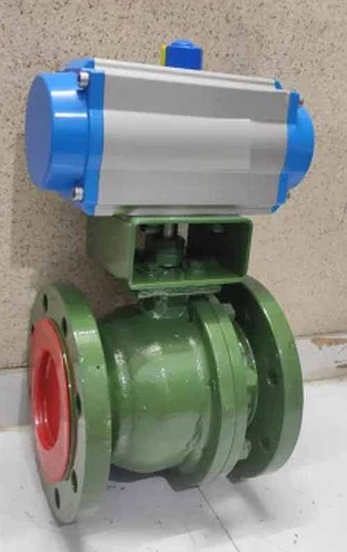 SN ENGINEERS manufacturer, and supplier of pneumatic rotary actuator operated 2 piece Fire safe & Floating Design Ball valve with standard CE approved Pneumatic actuator. It is suitable for Pressure Up to 10 BAR and Temperature Up To 180°C.